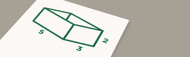 $2$ cm × $3$ cm × $5$ cm = $30$ cubic centimeters