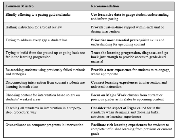 Recommendations for Targeted Math and Intervention