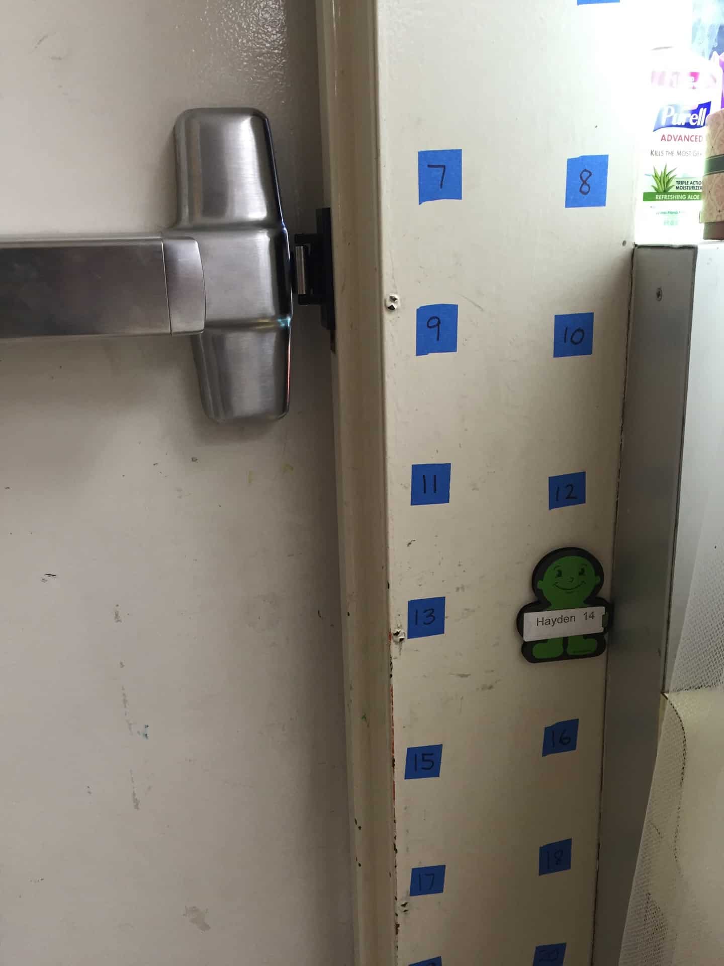 At the end of the day, students return their magnet man onto their “number”, and have another opportunity to practice number recognition. We look each day at how many spaces are empty on the last 10 frame. This will build toward another Major Work of the Grade topic: for any number from 1 to 9, find the number that makes 10 when added to the given number (K.OA.A.4).
