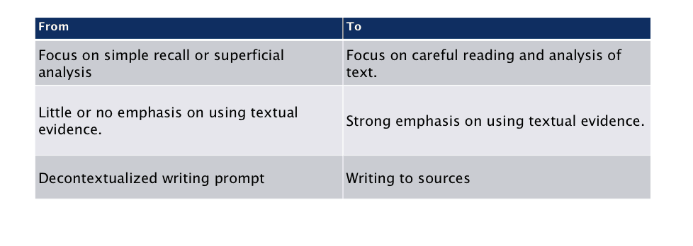 In terms of ELA, do your questions help support major understanding of the text, target tier 2 vocabulary, and require evidence from the text? Check your understanding of these here by going through this aligned assessment and asking yourself, “How does each of these questions help get at the instructional Shifts and reflect the principles in the right-hand column below?