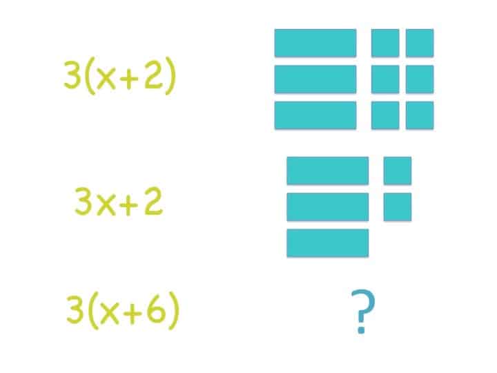 You can watch the “Connections Representations: Algebra I Distributive Property” video on this page to see the routine in action. The class will consider the following task, and the students will work to make connections between the expressions and the visual.